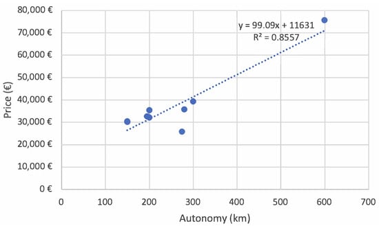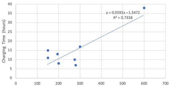 Finally, the same exercise can be carried out between autonomy and charging time, which also shows a positive correlation (see Figure 3).