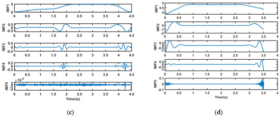 Due to the complexity and nonsmoothness of the braking signal, it is difficult to extract the signal features accurately by directly finding the sample entropy for them. Therefore, in this paper, variational modal decomposition (VMD) is used to process the braking signal [15], and the effective components of the original signal are obtained by decomposing the original signal into an intrinsic modal function (IMF), in preparation for the subsequent extraction of the sample entropy as signal features.