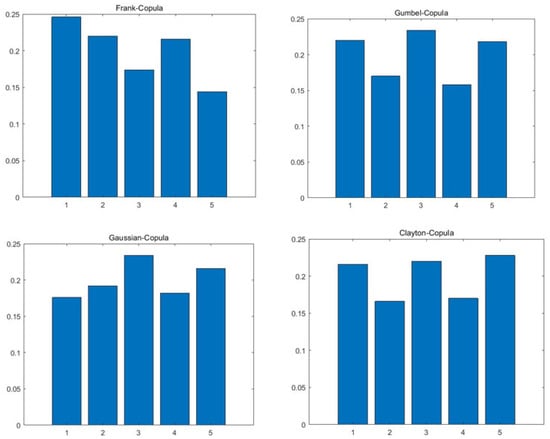 Because there are many types of copula functions, it is impossible to select the optimal copula directly, so it is necessary to distinguish the goodness of fit and select the optimal function. The commonly used methods include functional image discrimination, correlation coefficient discrimination, and Euclidean distance discrimination [16].