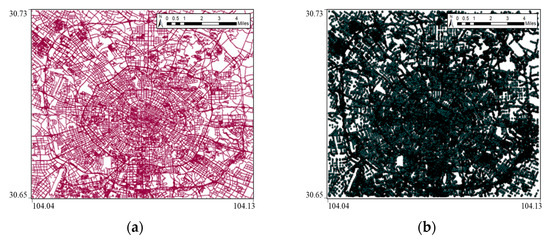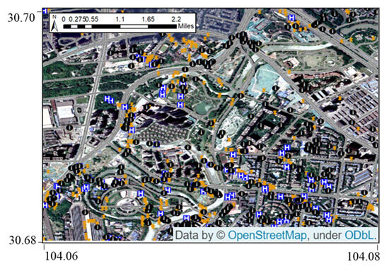 POI data: 11 types of POI data concerning Chengdu from AutoNavi map were sourced through the Chinese Software Developer Network (CSDN) website. The original data format includes information such as POI name, longitude and latitude coordinates, address, district, and POI categories.