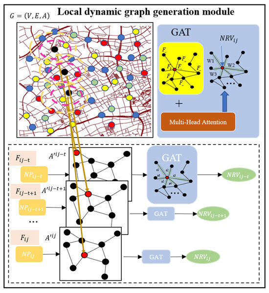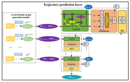 A Local Dynamic Graph Spatiotemporal–Long Short-Term Memory (LDGST–LSTM) is proposed in this paper to predict the next location of vehicle trajectory. Through the proposed model, POI knowledge is extracted and fused by constructing a traffic knowledge graph. Additionally, GAT and temporal attention mechanisms are combined to improve the accuracy, robustness, and interpretability of the prediction. The main contributions of this paper are as follows.