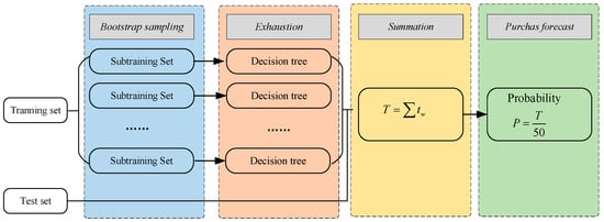 Based on the above analysis results, the random forest method [36] is adopted to establish a car purchase prediction model, and the algorithm flow is shown in Figure 3.