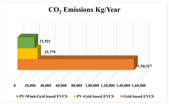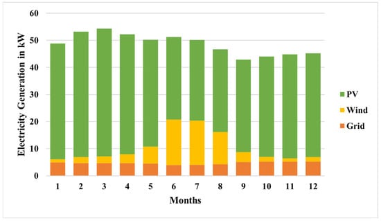 The net grid purchases in a grid-linked power plant are determined by HOMER and computed as the total grid purchases minus the total grid sales. The pollution emissions linked to the net grid purchasing are then calculated by the software by multiplying the emission parameter (in g/kWh) divided by the net grid expenditure (in kWh) associated with each pollutant. The Indian electrical grid’s emission factor is reported as 0.968 tCO2/MWh [].