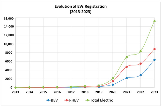 Evolution of EV registration in Greece (“2013–2023”) (Adapted from Ref. [18]).