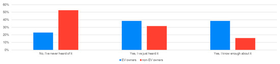 Participants’ relationship, for each category, with the V2G technology (question: have you ever heard of the term vehicle-to-grid (V2G)?) depending on EV and non-EV owners.
