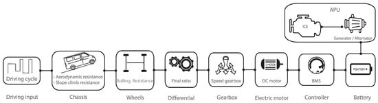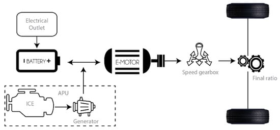 Analyzed configuration of an Extended-Range Electric Vehicle.