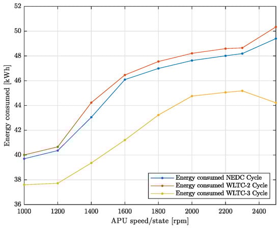 After integrating the mathematical models, various simulations were conducted by adjusting the angular speed of the APU (ICE generator) to create an efficiency map. Additionally, the implementation of ECMS control was used to enhance energy generation. The powertrain optimization was carried out in a practical manner.