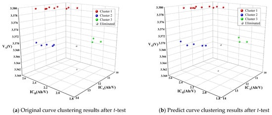 - Clustering based on IC curve features: Extract the ICA, ICB, and VA of each battery as clustering features and combine with a t-test to exclude outliers in the clustering results.