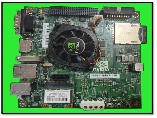 For the replication of the proposal, we had to ensure a low-cost hardware architecture and low power consumption, as well as simple use and installation, allowing the execution of high-performance applications that run in real time. In our particular case, for the execution of YOLO architecture, version 3, we needed to perform pattern detection in real time by recording video obtained from a camera. We used embedded hardware from Nvidia, which had low power consumption and sufficient computational capacity to run the YOLO application. The model chosen was the TK1 version, which is one of the first versions of embedded hardware commonly used for artificial intelligence applications. It contains in its architecture a 4-core Cortex-A15 CPU and a Kepler architecture GPU with 192 Cuda Cores, 2 Gb of RAM DDR3 and a storage unit of 16 GB eMMC, and it has USB 3.0 connectivity and a HDMI connector. All of these components are included in the same hardware, so the model does not require additional devices to function, only a 12 Volt power supply.