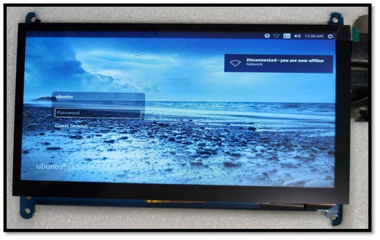 Central to the proposal is the easy use and management of the device. We resorted to the use of a 7” × 5” touch screen, which allows coupling with the Jetson Tk1 card. The screen was easy to connect using HDMI connectors for video transmission and USB for power. The display worked integrally with the board; in our case, we required access to the operating system and the execution of applications.