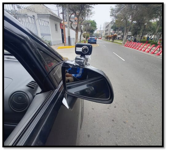 The camera was aligned with the side-view mirror of the car in order to obtain the same image that is present in the mirror. If the driver moved the side-view mirror, the camera performed the same movement, so the camera registers an image identical to that in the side-view mirror.