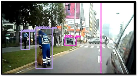 In Figure 10, you can see the detection of several people and cars at the same time, the people are performing different activities, which allows validating the functionality of the proposal.