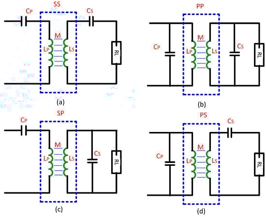 Compensation circuit types: (a) series–series “SS”; (b) parallel–parallel “PP”; (c) series–parallel “SP”; (d) parallel–series “PS”.
