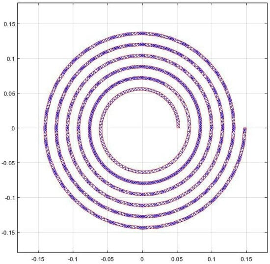 The dimensions of the circular coil shown in Figure 4a can be calculated using Equation (39) as follows: