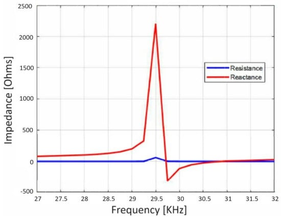 where h is the distance between the centers of the coils. The transmitter and receiver coil voltages can be calculated from Figure 5. The current in the transmitter coil (TC) induces a changing magnetic field, which generates an emf . This is due to the self-inductance of TC. The same changing magnetic field in the TC also links the receiver coil (RC) and induces an emf due to the mutual inductance between the two coils. As a result, a current flows through the RC, inducing another emf due to the self-inductance of the RC. The equations in the frequency domain can be expressed using Equations (25) and (26) as follows: