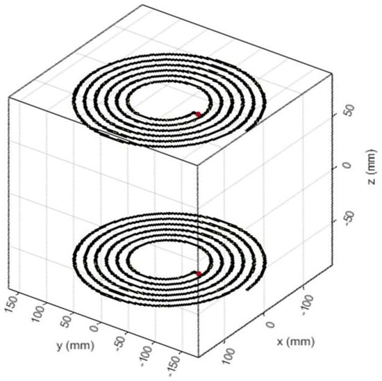 In this paper, the commonly used circular coil system shown in Figure 4a was chosen for the proposed strategy. The design of the coil was based on the calculated inductance , and M, as per Equations (21)–(23), respectively. A software program was used to determine the coil design. The inductance of a single-layer inductor can be calculated using Equations (33)–(35) as follows: