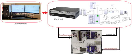 - To validate the results, a wireless EV charging prototype using OPAL-RT 4510, OPAL-RT, Montreal, QC, Canada was created and integrated with the simulation MATLAB Simulink Software 2022 with WPT technology. The results confirmed the effectiveness of the proposed DWC system and could reliably transfer power to the moving EVs with high efficiency.