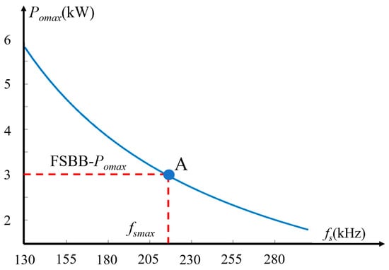 As the input voltage decreases, Pomax gradually decreases. Therefore, by substituting Vin = Vinmin, the relationship diagram between Pomax and fs is shown in Figure 8, where point A represents the maximum output power of the FSBB converter in this paper. In order to leave a certain margin, fsmax = 200 kHz is selected.