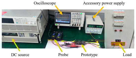 In order to verify the effectiveness of the control strategy, a FSBB converter with an input voltage of 210 V–330 V, an output voltage of 270 V, a rated power of 3 kW, and a three-dimensional size of 7 cm × 12 cm × 2 cm was developed. The experimental platform is shown in Figure 12. The key parameters of the experimental prototype are shown in Table 1.