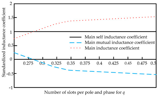 The inductance coefficient is related to the slot pole coordination. Under a certain number of slots, the main self-inductance coefficient of the motor with a q value of 0.5 is the standard, and the inductance coefficient is processed using the standard per unit method. The main inductance coefficient, second-order inductance coefficient, slot leakage inductance coefficient, and d-q-axis air gap inductance coefficient are analyzed in the sequence below.