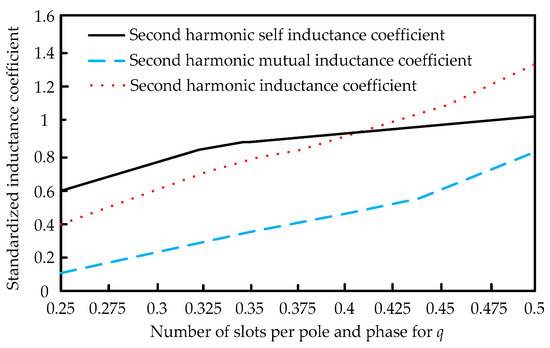 Relationship diagram between second-order harmonic self-inductance, mutual inductance, inductance coefficient and the number of slots per pole and phase in q of the motor.