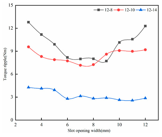 Figure 13 shows the variation curve of the motor torque ripple under different slot opening sizes.