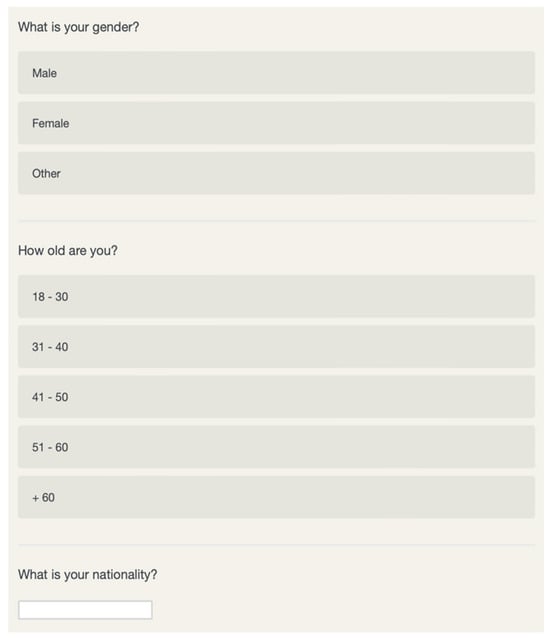 Therefore, an online survey for collecting primary data was conducted to validate the hypothesis created. The platform used for this purpose was Qualtrics, a web-based survey platform that provides tools for building and distributing surveys, analyzing responses, and generating reports, which also offers a user-friendly interface and a wide range of features for creating and conducting surveys [].