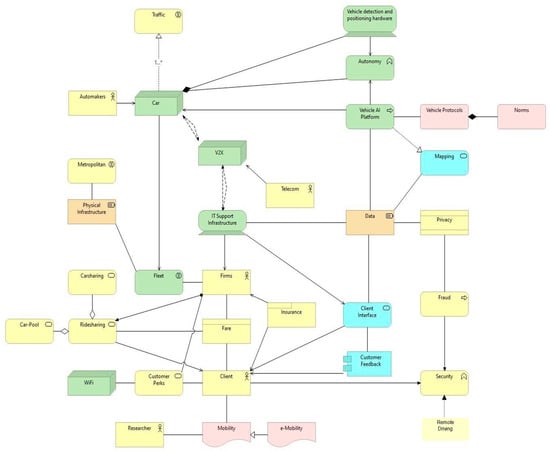 Repeating the process followed by [], that is, classifying all 34 concepts into ArchiMate layers and sublayers of the ArchiMate 3.1 Specification and then using the Archi—Open Source ArchiMate Modeling4, it was possible to model the obtained concepts as well as the relationships among them, according to the ArchiMate defined relationships.