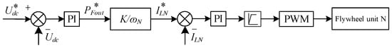 (1) Mode 1. When , where is the main controller to calculate the output power value, is the maximum output power of the Nth flywheel energy storage unit. At this time, the load power is less than the maximum limit output power of the Nth flywheel energy storage unit. Therefore, in order to reduce the loss of the flywheel unit, only the Nth flywheel energy storage unit needs to be put into operation, and other flywheel energy storage units operate in the standby state. At this time, the system control block diagram is shown in Figure 6.