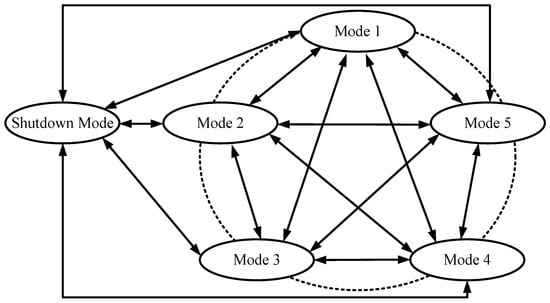 According to the above analysis, the energy management strategy of the microgrid system is designed: the microgrid system is divided into six states according to the operation mode, and the working mode is converted in an event-driven manner, as shown in Figure 9.