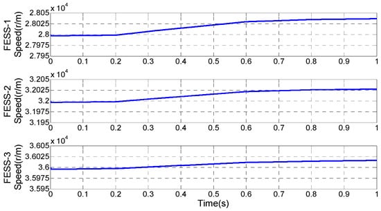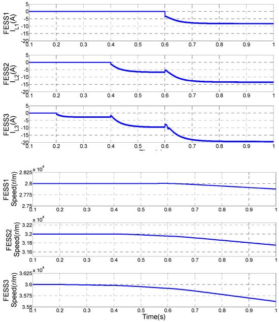 For the convenience of research, the angular velocity of each flywheel energy storage unit can be set to satisfy the relationship . The energy released by each flywheel energy storage unit is satisfied (). Since the basic electrical parameters of each flywheel energy storage unit are the same and the maximum output current of each flywheel unit is also the same, the maximum output power of each flywheel unit satisfies the following relationship: .