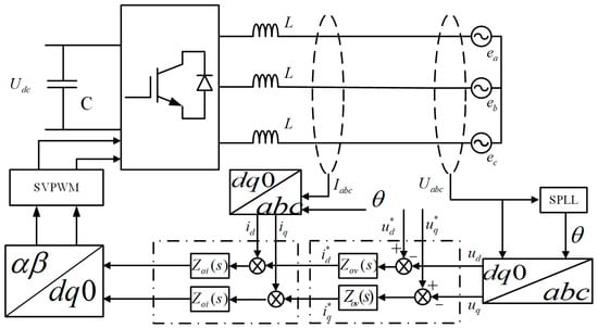In Formula (5), the components of the solar inverter’s output side current in the d–q coordinate system are and , respectively. , is the component of grid voltage in the d–q coordinate system. , represents the component of the output side voltage of the photovoltaic inverter in the d–q coordinate system.