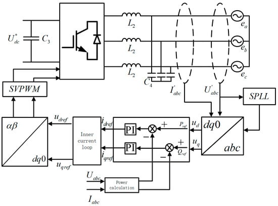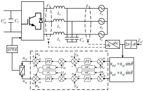 Substituting Formula (3) into Formula (4), the photovoltaic system’s mathematical model in d–q coordinate system may be acquired: