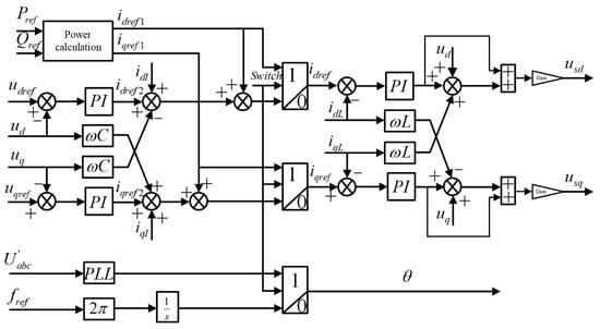 The segregation of voltage and current enables dual closed-loop regulation of these parameters. Reference values for both voltage and frequency are established. When outputs and from the current inner loop function as modulation signals, output and are modified to enhance the dynamic response characteristics of the system and to optimize the performance of the existing inner loop. The methodology for determining the reference value of the electric ring differs between V/F control and P/Q control.