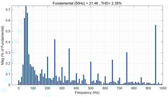 Figure 17 presents the results of the Fast Fourier Transform (FFT) analysis conducted on the grid-connected current.