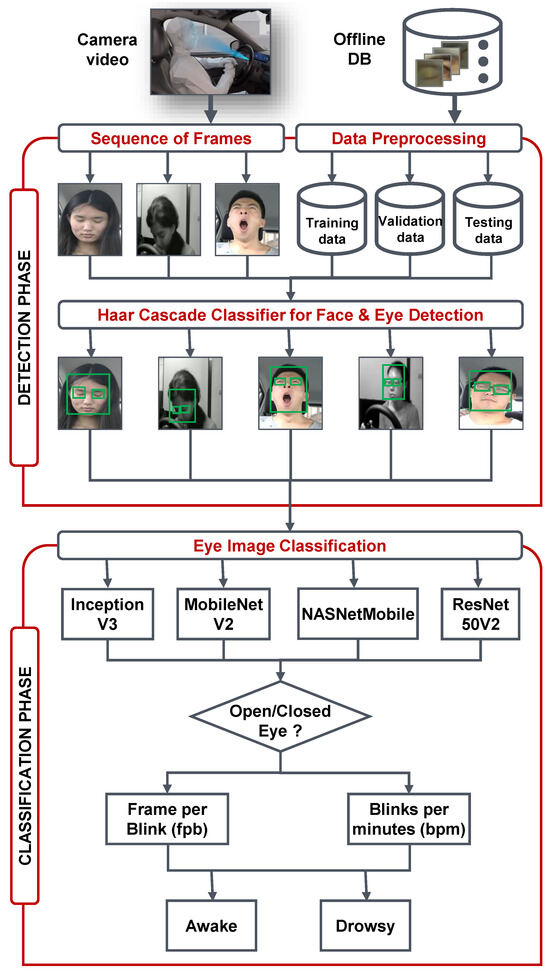 - Faisal, T.; Negassi, I.; Goitom, G.; Yassin, M.; Bashir, A.; Awawdeh, M. Systematic development of real-time driver drowsiness detection system using deep learning. IAES Int. J. Artif. Intell. 2022, 11, 148. [Google Scholar] [CrossRef]