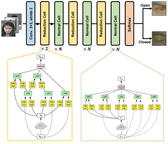 - Zoph, B.; Vasudevan, V.; Shlens, J.; Le, Q.V. Learning transferable architectures for scalable image recognition. In Proceedings of the IEEE Conference on Computer Vision and Pattern Recognition, Salt Lake City, UT, USA, 18–23 June 2018; pp. 8697–8710. [Google Scholar]
