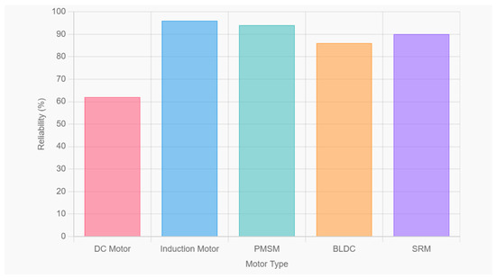 SRMs feature the simplest design among all motor types, resulting in moderate manufacturing costs. The absence of magnets further decreases their cost. SRMs are small and offer a high power-to-weight ratio, much like BLDC motors. BLDC motors are pricier than induction motors because they use magnets, but they are typically less expensive than PMSMs. BLDC motors are also compact and lightweight, providing a high power-to-weight ratio, which is beneficial for EV applications [64,65,66]. In conclusion, each motor type has its own set of cost and size characteristics that make it suitable for different EV applications. DC motors tend to be the least expensive option, with relatively simple and inexpensive construction. BLDC and IM are moderately priced, with BLDC motors slightly more expensive due to the required electronic controller. PMSMs are typically the most expensive as they require rare-earth permanent magnets, which can be costly. SRMs are also relatively expensive, with complex control electronics adding to the costs. In conclusion, for low-budget applications, DC and induction motors are cost-effective. For high-efficiency, high-performance requirements, PMSM and BLDC motors are worth the higher cost. SRMs offer a middle ground, being cost-effective with emerging applications, especially in EVs.