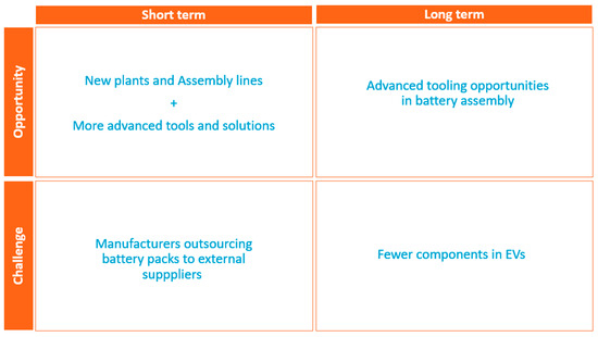 As the automotive industry is dynamically developing and changing its structure to accommodate the increasing demand for electric vehicles, there is a growing body of research on the electrification of the automotive industry [6,7]. Despite this, there is limited focus on the specific effects of the transition on the assembly tooling industry, particularly for utility terrain vehicles (UTVs). Existing studies often overlook the unique challenges and opportunities that arise for assembly tool suppliers as manufacturers adapt to electric drive systems. This paper addresses this gap by examining how the shift from internal combustion engines to electric drives in the UTV industry impacts the need for tightening tools while also identifying emerging opportunities in battery pack assembly.