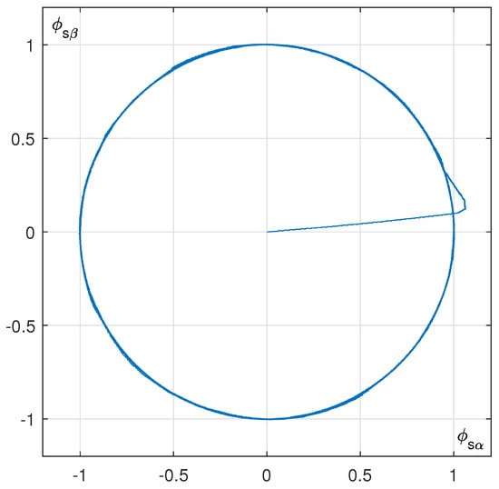 To calculate the reference angle for the stator flux, the slip angular reference speed , which is the output from the proposed controller, is utilized. In the reference frame (), the polar coordinates are used to determine the reference stator flux and as follows: