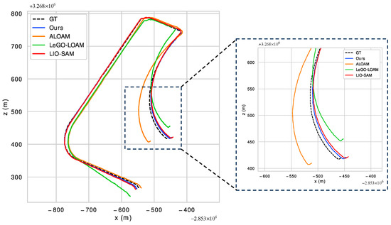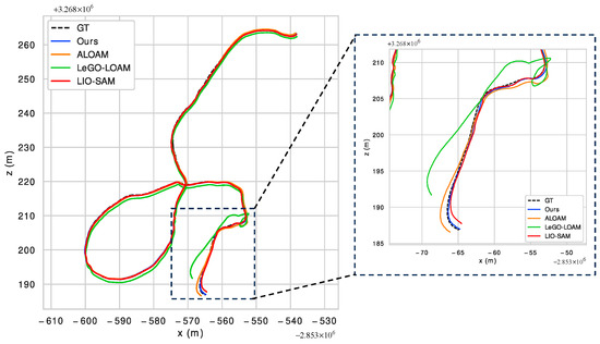 Figure 16. Trajectory comparison of street02 sequence on x-z plane.