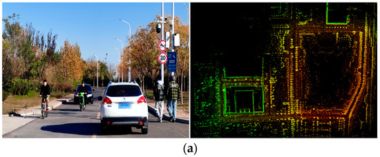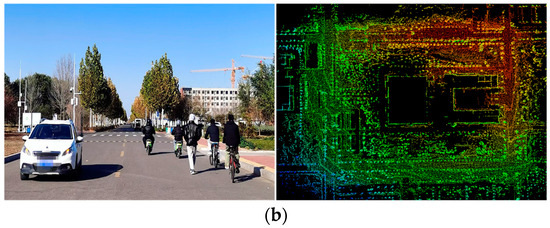 Figure 19. (a) Scene one from campus self-collected dataset; (b) scene two from campus self-collected dataset.