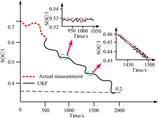 In Figure 11, the robustness of the algorithm estimation at an initial SOC value of 0.2 was not as good as that of the UKF at 1600 s.
