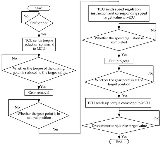 The core of AMT is the control strategy and the quality of this strategy directly determines the performance of the vehicle’s driving performance, which is a manifestation of intelligence. The higher the level of intelligence, the more capable it is of driving according to the driver’s inclination. Liu Wengguang et al. [3] made use of a fuzzy control algorithm to design a shift controller based on the driver’s power demands, but the shift process was not studied. Wang Dafang et al. [4] studied the shift control of AMT without a clutch synchronizer, but control optimization was only applied to the gearshift actuator. Xiao Lijun et al. [5] proposed a comprehensive coordinated control method for driving motors and the results of the bench tests prove that this method makes the shifting process faster. In [6,7], the objective of the research is focused on the motor speed control and the dynamic characteristics of the shift actuators, respectively, without taking the impact of the lifting and twisting stage on the transient state of the gear-shifting process into consideration. Based on the control strategy of the optimal controller, the quality of the shifting process is improved, and it is pointed out that the lifting and twisting stage of the driving motor has the most significant influence on the shifting quality [8,9].