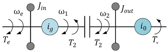 where Jin and Jout are the moment of inertia converted to the AMT input shaft and output shaft, respectively. D represents the differential operator, is the rotor speed of the drive motor, is the target gear speed of the meshing sleeve, is the speed of the AMT output shaft; is the torque of the driving motor, is the torque of the AMT output shaft, Tᴪ is the ground resistance moment, is the AMT transmission ratio, is the main reduction ratio.