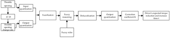 Since the driver’s operation and the vehicle’s state are different during each shift, it is difficult to adapt to the driver’s demand for AMT shift quality under different conditions if the unified lifting and lifting torque rate is adopted. Therefore, the fuzzy control algorithm is used to recognize driving intention, which is apt to be realized in the controller and promote the current level of intelligent shifting [25].