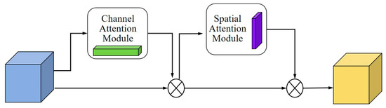 The CBAM attention mechanism can model both channel attention and spatial attention at the same time, so that the model can adaptively select important characteristic channels and spatial positions [21]. The basic principle of CBAM’s attention structure is the following: as can be clearly seen from the above figure, CBAM consists of two independent sub-modules, namely, the channel attention module (CAM) and the spatial attention module (SAM), which respectively fuse the attention features in the channel and the spatial dimensions.