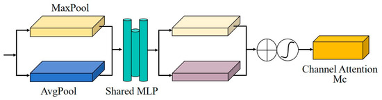 As shown in Figure 3, the channel attention module is used to weight different channels of the input feature map to highlight important channel information. It calculates the global average and global maximum of each channel and generates a channel attention vector by using the fully connected layer and activation function. Then, the vector is multiplied by the input feature map using a multiplication operation, thus highlighting the important channel features.