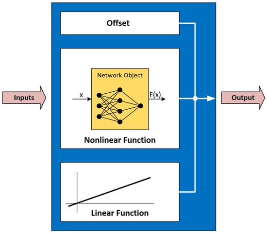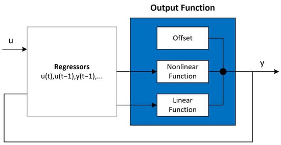 Schematic for the NARX model (https://www.mathworks.com/help/ident/ref/idnlarx.html?s_tid=doc_ta, accessed on 10 February 2024).