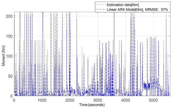 Correlation between the measured total motor’s moment during the field test maneuver and the estimated moment from the NARX prediction model.